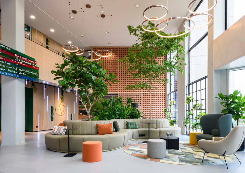 De ruimtes worden ingevuld met een bedrijfsrestaurant, shared office space, meeting area, mediaroom, bar, podcast ruimte, bilbiotheek en wellness.
